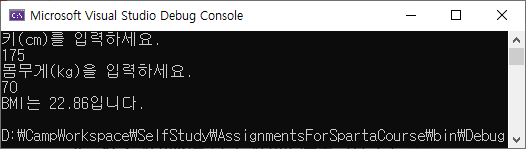 height = float.Parse(Console.ReadLine()) / 100; //BMI 계산은 m로 하는게 편해서 100 나눔.
