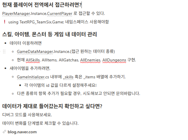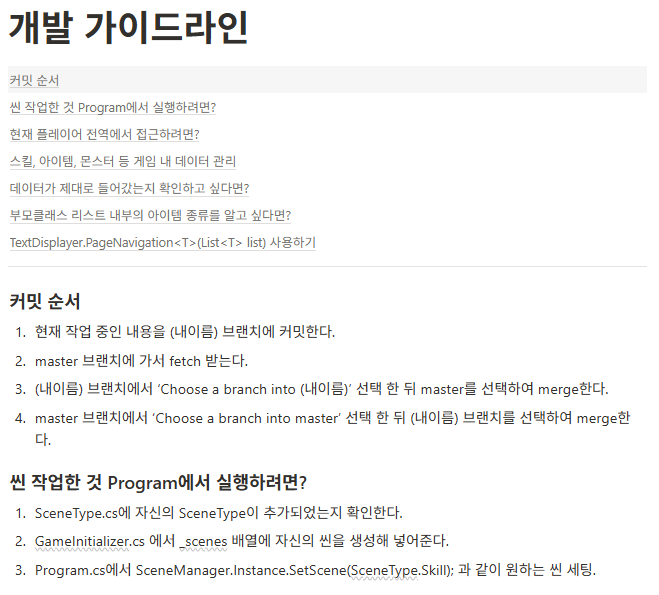 스크럼하면서 해결한 문제들 중, 반복해서 확인하거나, 습득에 시간이 걸리는 경우들은 다음과 같이 개발 가이드라인 문서로 정리했다.