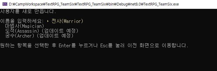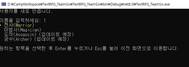 오른쪽 사진이 처음 시작했을 때 화면이고, 오른쪽 사진은 도적이나 궁수 같은 구현되지 않은 직업을 선택했을 때의 화면.