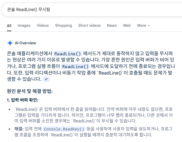 AI 도움 안 받고 해결해보려고 구글링 한건데, AI Overview가 자동으로 떠서... 일단 입력 버퍼라는 걸 확인해봤음.