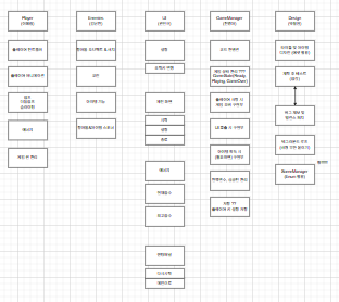 우선 인원별로 나누어서 역할을 분담하였고, 그 후에는 각 역할들이 어떤 부분들을 구현할지에 대해서 나열했다.