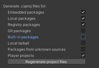 제일 하단의 Player projects만 체크하고 (상단의 세개는 기존에 선택되어있었음) regenerate 해도 된다!