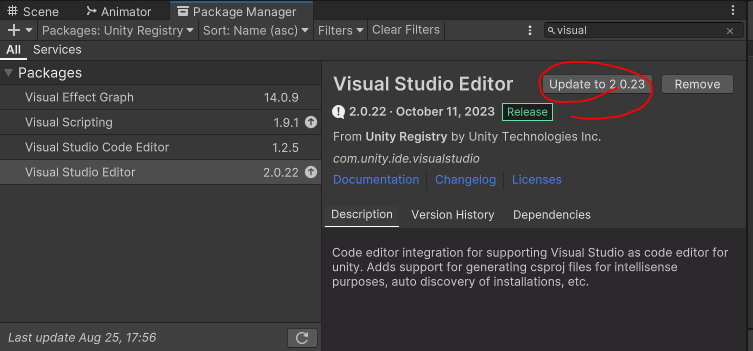 Unity - Visual Studio 에디터 자동완성 깨짐