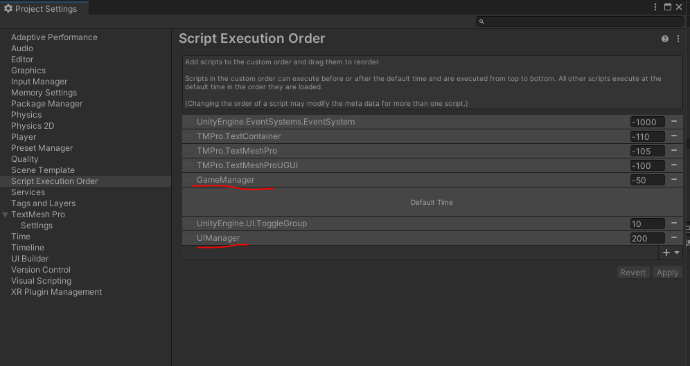 Edit -> Project Settings -> Script Execution Order를 통해 다음과 같은 창을 열 수 있다.
