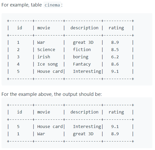 LeetCode - Problems - Database - 620. Not Boring Movies