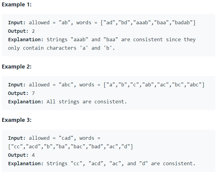 A string is consistent if all characters in the string appear in the string allowed.