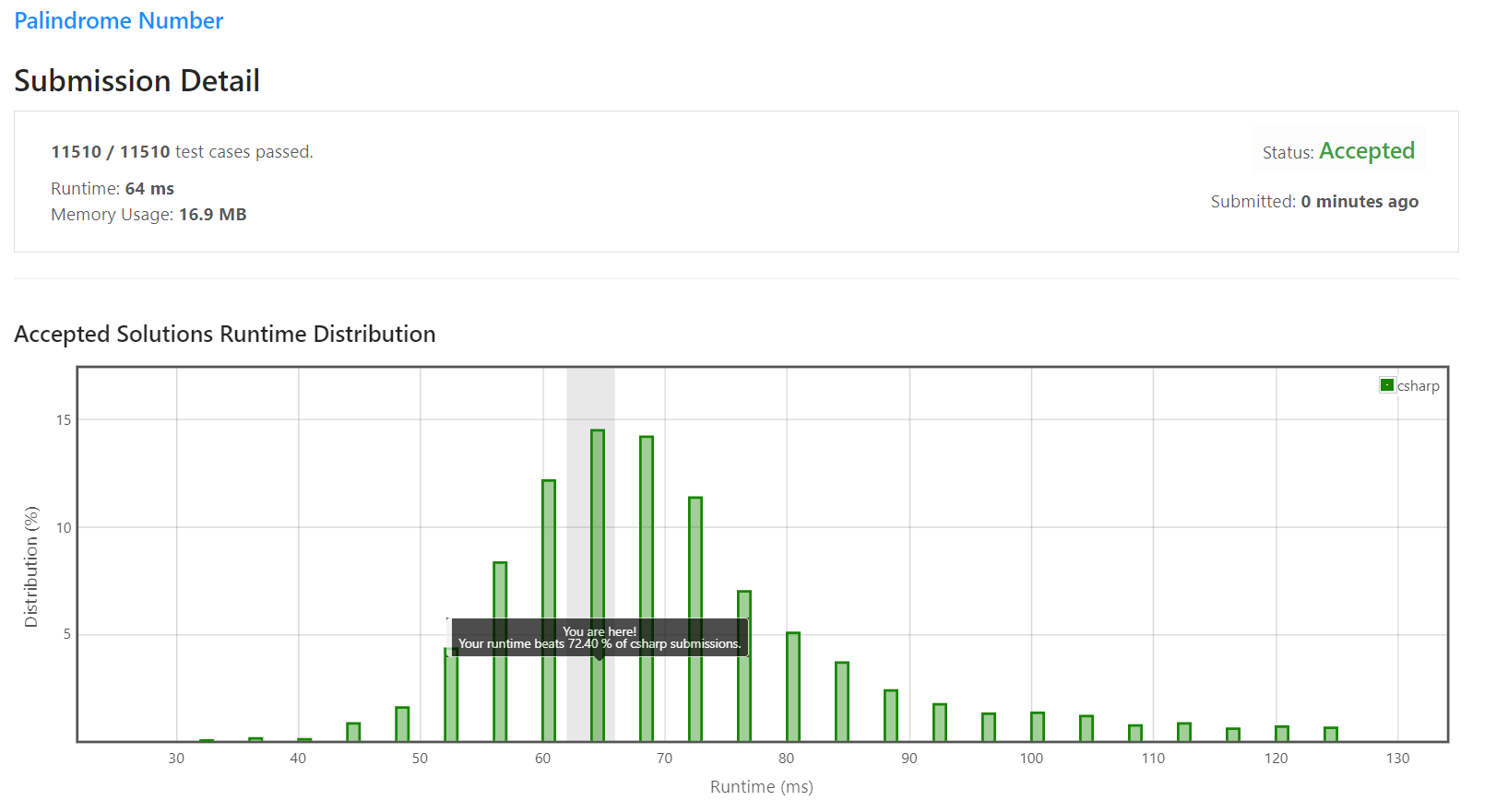 runtime์ ๋น๊ตํด๋ณด๋ฉด ์ซ์๋ฅผ ์ด์ฉํ ํ์ด ๋ฐฉ๋ฒ์ด runtime๋, memory usage๋ string conversion์ ์ด์ฉํ ๊ฒ๋ณด๋ค ์กฐ๊ธ ๋ ํจ์จ์ ์์ ํ์ธํ ์ ์๋ค.